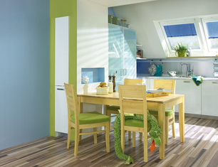 Wischtechnik-Lasuren vermitteln durch ihre farbige Transparenz eine sympathische Tiefenwirkung und betonen die Strukturierung des Untergrundes. Mit dieser Technik können dezente aber auch kräftige Akzentflächen individuell gestaltet werden.